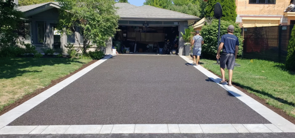 Pour une entrée résidentielle typique, 2 à 3 jours suffisent, incluant l’excavation, la préparation du terrain et la pose finale.